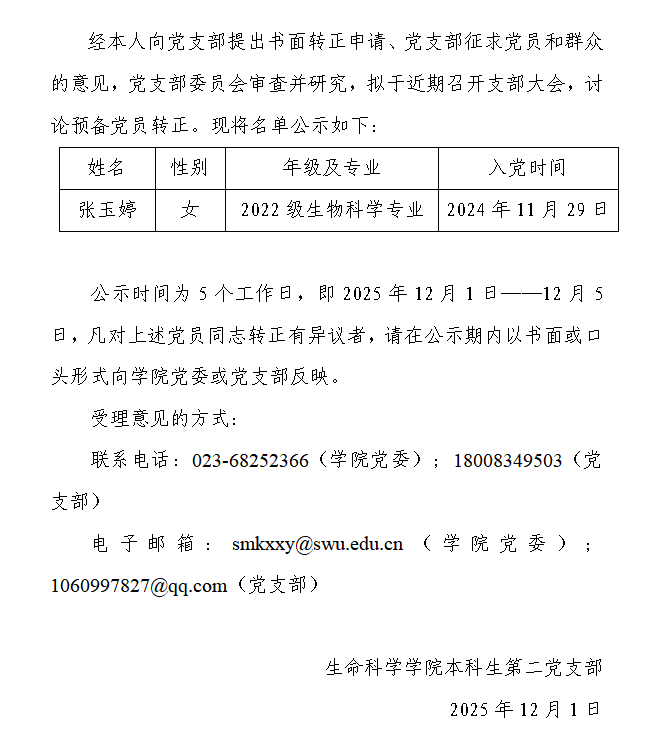 本科生第二党支部预备党员转正公示