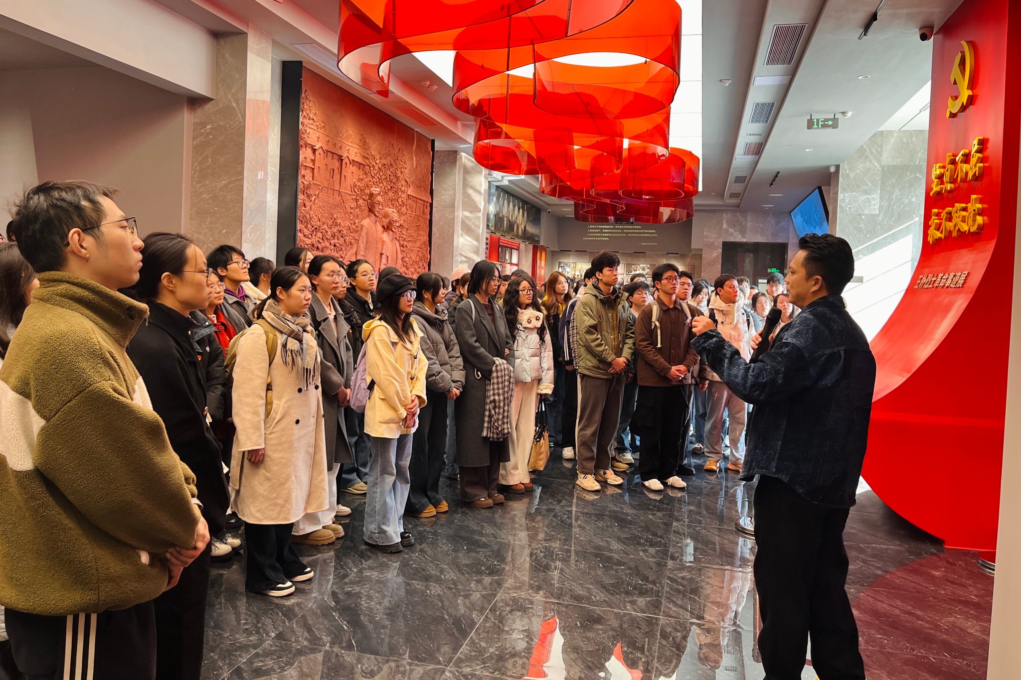 在讲解员引导下,师生依次参观“求学奋进 追求真理”“投身革命 毁家纾难”等五个主题展区。泛黄影像里的坚毅目光、手书信件中的理想热忱、朴素遗物承载的峥嵘岁月,生动再现了王朴烈士变卖家产投身革命、身陷囹圄仍坚贞不屈,最终年仅二十八岁从容就义的光辉一生。先烈“毁家纾难”的家国情怀与对党忠诚的赤子之心,让在场师生深受触动。